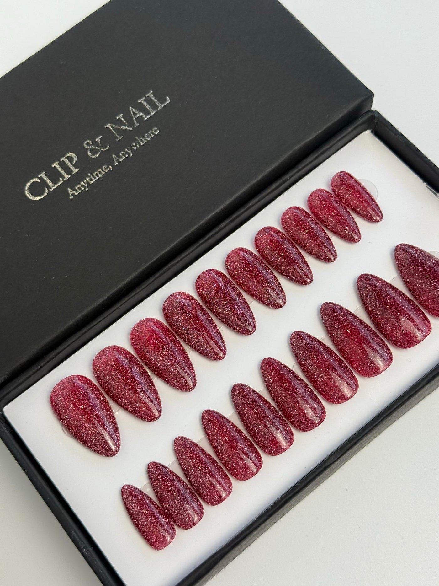 Un kit comporte 20 ongles de tailles différentes afin que chaque personne puisse trouver les press on nails qui correspondent à sa morphologie d'ongles. Un kit d'application est offert avec chaque kit.