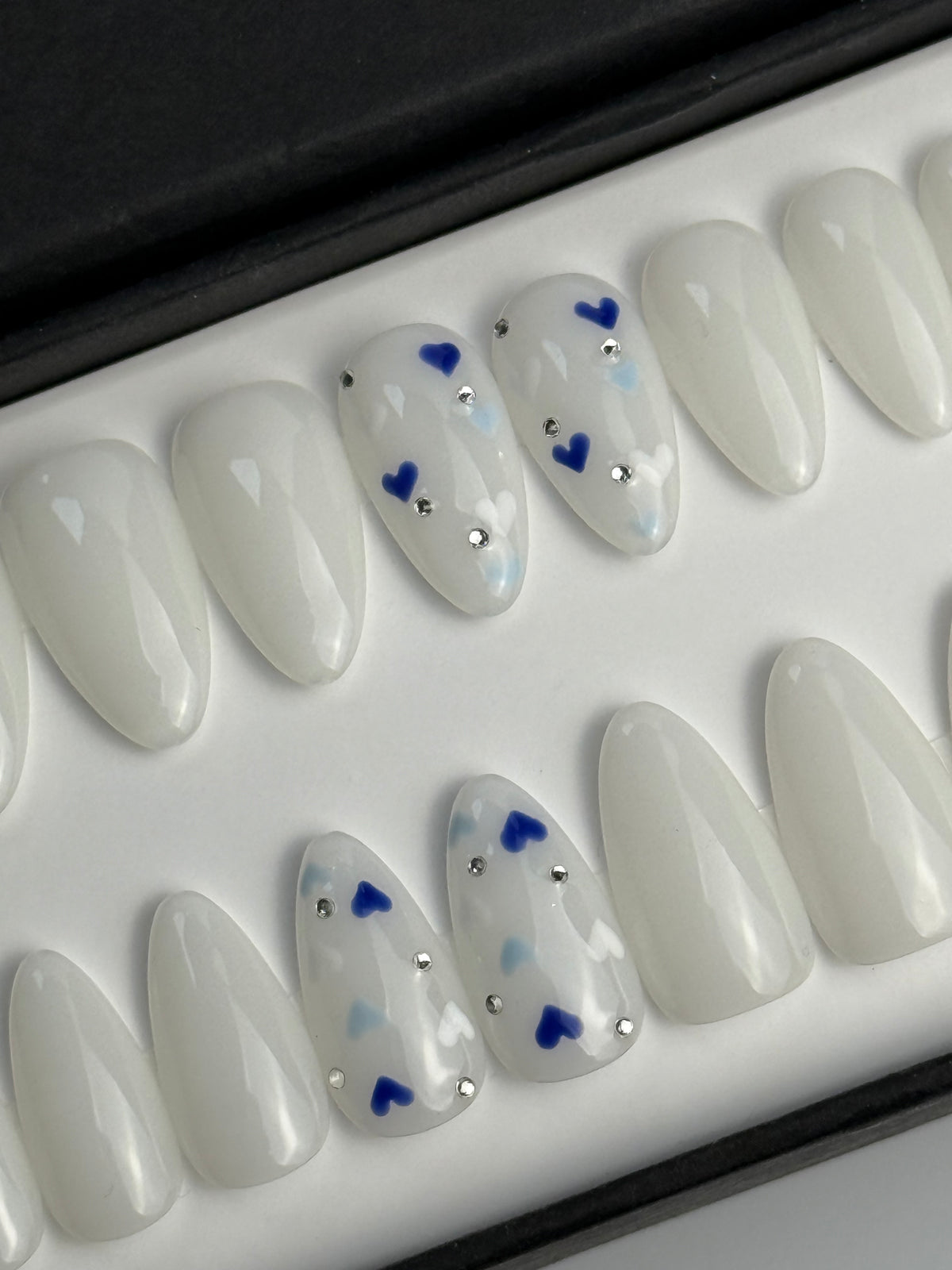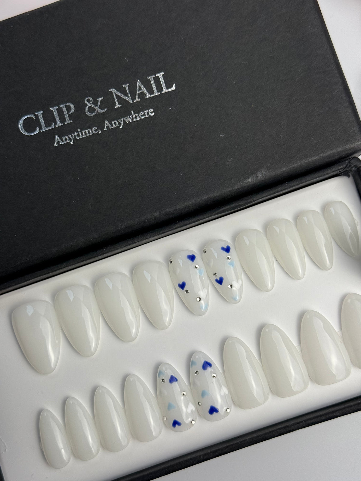 Un kit comporte 20 ongles de tailles différentes afin que chaque personne puisse trouver les press on nails qui correspondent à sa morphologie d'ongles. Un kit d'application est offert avec chaque kit.